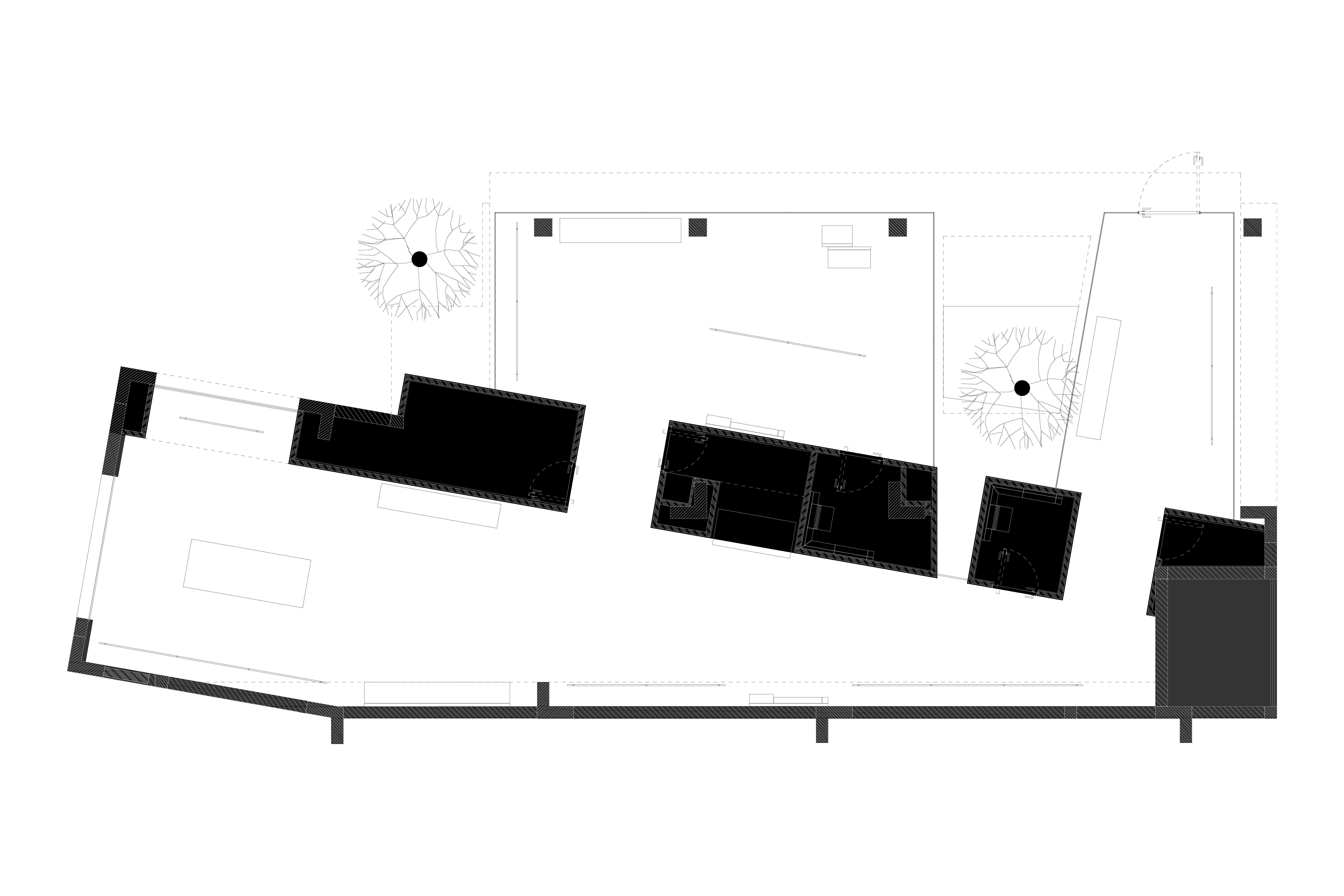 A WHITE WALL DIVIDES THE SPACE INTO INNER AND OUTER ZONES. THE EXTERIOR SERVES AS THE "TREEHOUSE’S" RECEPTION AREA, WHERE TRANSPARENT GLASS WALLS AMPLIFY THE DAPPLED PLAY OF LIGHT AND SHADOW THROUGH THE TREES—CREATING AN ATMOSPHERE OF EASE AND NATURAL COMFORT. BEYOND THE WALL LIES THE INTROVERTED, PRIVATE RETAIL CORE, WHERE MORE CLOTHING AND ACCESSORIES ARE THOUGHTFULLY DISPLAYED YET GENEROUSLY PRESENTED TO GUESTS—WARMLY AND OPENLY. THE WALL’S THICKNESS DISCREETLY INCORPORATES FUNCTIONAL AREAS LIKE CHANGING ROOMS AND CHECKOUT, PRESERVING THE PURITY OF THE OUTER SPACE.