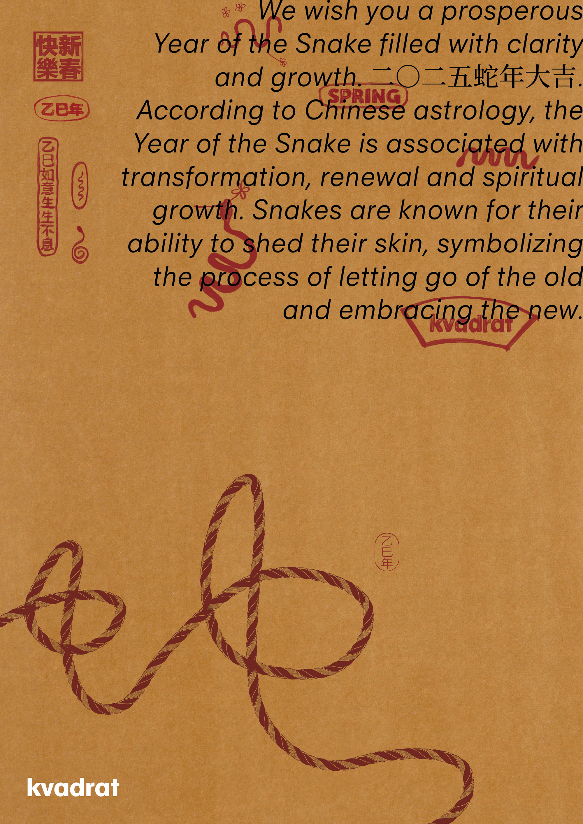 中式底蕴,现代笔触,我们借中国书画和印章为灵感,以面料作纸,为大家书写蛇年祝福。