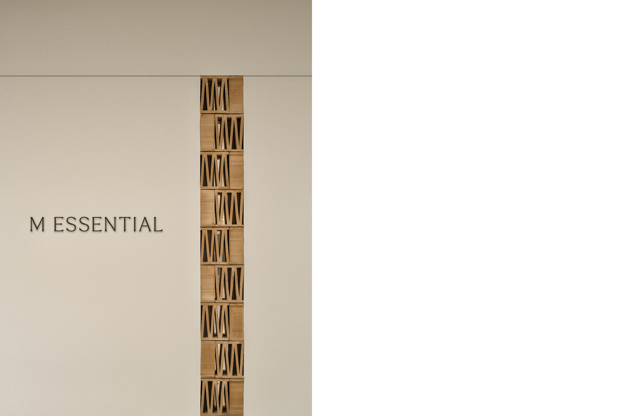 REINTERPRETING “M ESSENTIAL” FROM A FRESH PERSPECTIVE, THE LETTER “M” AS THE CORE ELEMENT EXTENDS ITS PRESENCE THROUGHOUT THE ENTIRE SPACE. THIS ENVIRONMENT DOES NOT EMPHASIZE A TRADITIONAL RETAIL EXPERIENCE OR COMPLEX ORNAMENTATION, BUT RATHER EMBODIES A THOUGHTFULLY EXECUTED MINIMALISM....